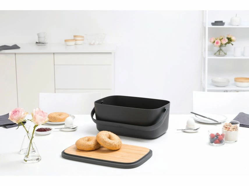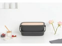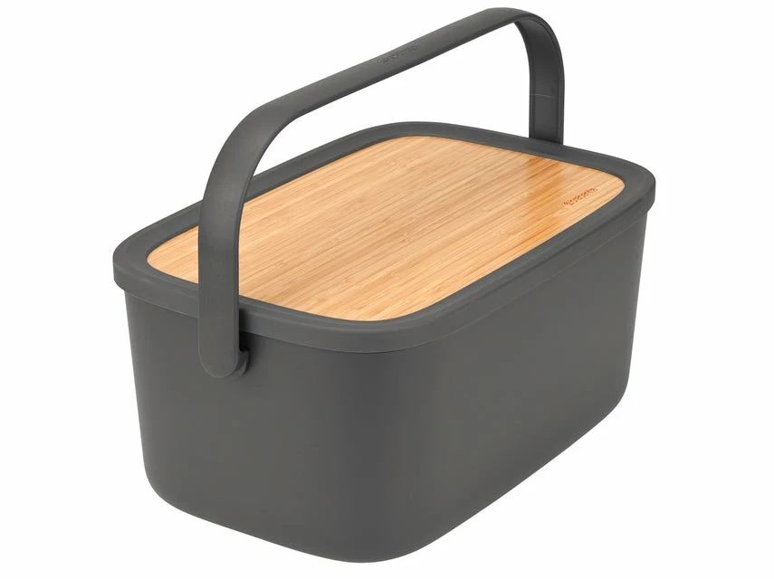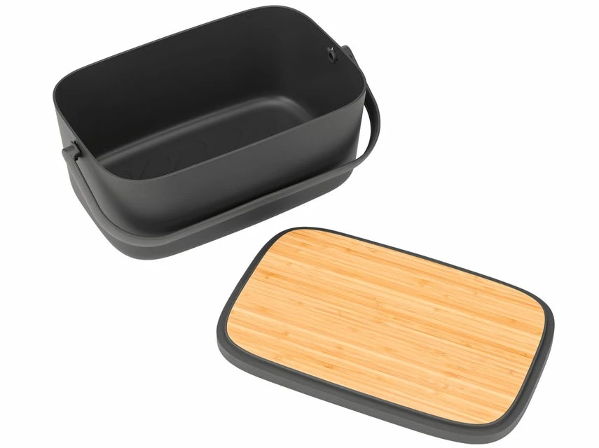 Kompakte Aufbewahrung und wunderschön zum Servieren. Mit dem praktischen Griff lässt er sich ganz leicht von der Küche zum Tisch tragen. Auch als Picknickkorb für einen Ausflug eignet er sich gut, da sie darin Ihre ganzen Schlemmereien verstauen können und der schöne Bambusdeckel gleichzeitig als Schneide- und Servierbrett dient. Ein wahres Multitalent zum Aufbewahren, Transportieren und Servieren. Der Deckelrand ist aus weichem, rutschfesten Material. Der großzügige Raum bietet zwei Broten Platz und für die gute Belüftung der Backwaren sorgt das Rippenmuster am Boden. Die Brotbox ist hygienisch leicht zu reinigen und frei von BPA. Mit dem Kauf erhalten Sie 5 Jahre Garantie und Service. Am Ende ist die Brotdose zu 49% recycelbar und daher auch Cradle-to-Cradle® in Bronze-Niveau zertifiziert.