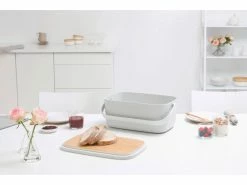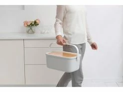 Kompakte Aufbewahrung und wunderschön zum Servieren. Mit dem praktischen Griff lässt er sich ganz leicht von der Küche zum Tisch tragen. Auch als Picknickkorb für einen Ausflug eignet er sich gut, da sie darin Ihre ganzen Schlemmereien verstauen können und der schöne Bambusdeckel gleichzeitig als Schneide- und Servierbrett dient. Ein wahres Multitalent zum Aufbewahren, Transportieren und Servieren. Der Deckelrand ist aus weichem, rutschfesten Material. Der großzügige Raum bietet zwei Broten Platz und für die gute Belüftung der Backwaren sorgt das Rippenmuster am Boden. Die Brotbox ist hygienisch leicht zu reinigen und frei von BPA. Mit dem Kauf erhalten Sie 5 Jahre Garantie und Service. Am Ende ist die Brotdose zu 49% recycelbar und daher auch Cradle-to-Cradle® in Bronze-Niveau zertifiziert.