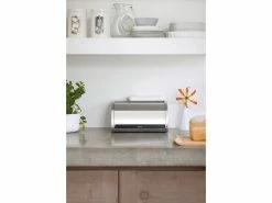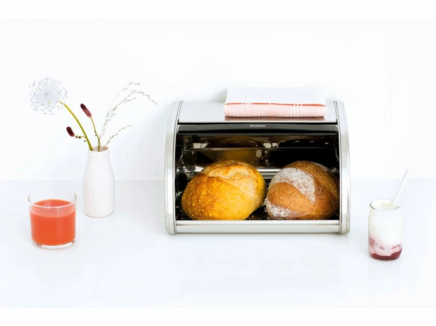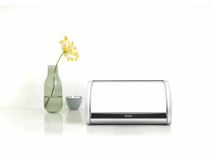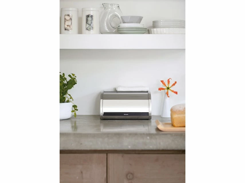 Der großzügige Rollkasten von Brabantia bietet Platz für 1 Brot und vieles mehr. Auch Cracker, Brotsticks und Kekse bleiben länger frisch. Da er Deckel nach hinten ins Innere rollt ist der Brotkasten platzsparend und es können zusätzliche Gegenstände und Vorratsbehälter auf der Dose abgestellt werden. Der Brotkasten wird somit zu einem reinen Stauraumwunder an der flachen Oberseite. Der genoppte Boden im Inneren sorgt für besseren Luftstrom und hält den Inhalt länger frisch. Die breite Griffleiste macht es einfach den Rollkasten zu öffnen. Das schließen erfolgt geräuschgedämpft und ist demnach sehr leise. Durch die Herstellung aus rostfreien Materialien ist die Box langlebig, weiters ist sie aus 48% recyceltem Material hergestellt und ist nach Gebrauch zu 97% wiederverwertbar. Dadurch hat der Brotrollkasten auch das Zertifikat Cradle-to-Cradle® auf Bronze-Niveau erhalten. Mit dem Kauf erhalten Sie auch 10 Jahre Garantie und Service.