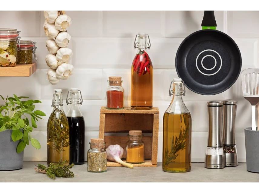 Die Bügelverschlussflasche mit Kanten von Chefkoch trifft Fackelmann gibt selbstgemachten Dressings, Säften oder Saucen ein stylisches & praktisches Zuhause. Nach der Zubereitung deines Chefkoch Lieblingsrezepts für Salatdressing kann dieses ganz leicht in die Glasflasche mit dem Durchmesser von 9 cm und der Höhe von 29,5 cm abgefüllt werden. In der Bügelverschlussflasche haben 1 Liter selbstgemachte Salatsoße Platz. Der Bügel aus verzinktem Stahl, der Bügelverschluss aus Kunststoff und der Ring aus Naturkautschuk verschließen die Flasche luftdicht und auslaufsicher. Außerdem erleichtert die Glasflasche den Küchenalltag, indem sie (ohne Drahtbügel) bequem in der Spülmaschine gereinigt werden kann.