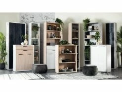 Auch als Bücherregal optimal verwendbar ist das Regal „Disegno“ in Beton Optik Dekor.