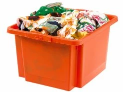 Die praktische Aufbewahrungsbox „H-Box“ sorgt für Ordnung im Haushalt und macht in kräftigem Orange gute Laune. Sie fasst 25 Liter und besteht aus Polypropylen. Die Box ist stapelbar oder kann um 180° gedreht auf ein anderes Element einer H Box aufgesetzt werden.