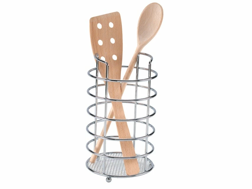 Der praktische Küchenhelferständer hält Schöpf- und Kochlöffel, Fleischgabel, Pfannenwender und mehr beim Kochen stets für Sie griffbereit. Der Ständer aus Chromsorgt für Ordnung und wird ohne Inhalt geliefert.