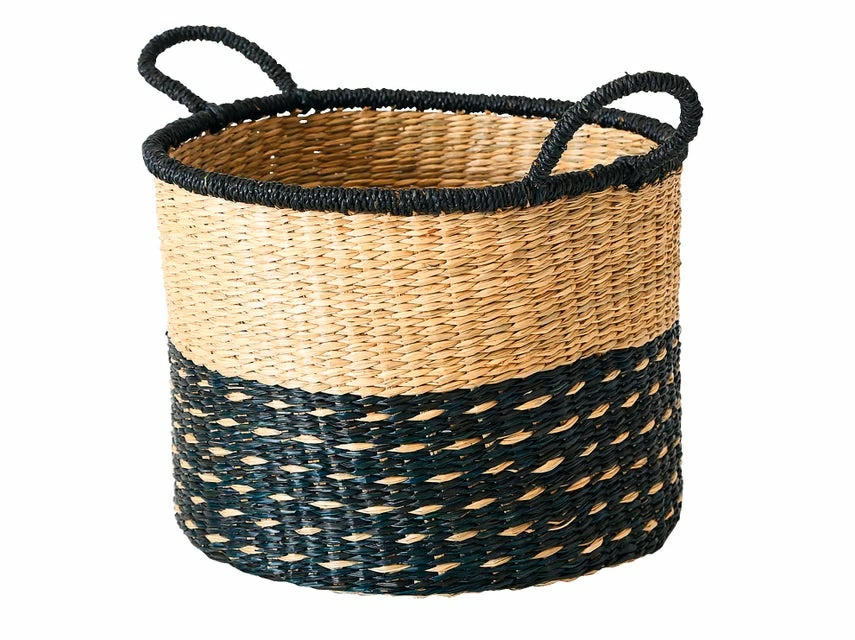 Schöner Korb zum Aufbewahren verschiedenster Dinge aus Seegras in Natur/Schwarz.