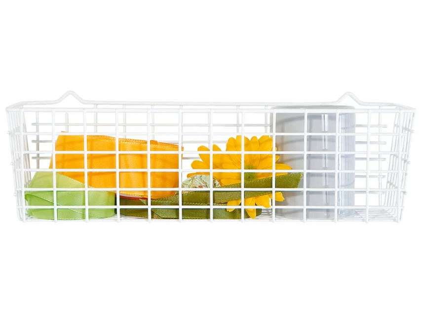 Vielseitig im Haushalt verwendbar ist der Allzweckkorb „Pandino“. Der Korb misst 32x12x9 cm und besteht aus weißem Metall. Ohne Dekomaterial im Online-Shop erhältlich.