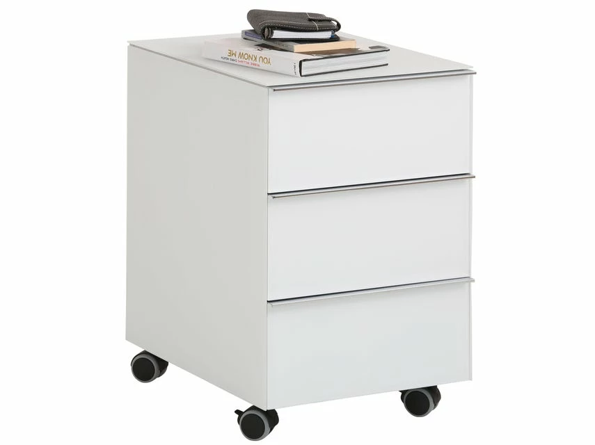 Ein Rollcontainer darf in Büro, Kinder- und Jugendzimmer nicht fehlen. Nutzen Sie den wertvollen Stauraum für Schreib-, Bastelutensilien und mehr. Das praktische Beimöbel ist mit 4 leichtgängigen Doppelrollen – 2 davon feststellbar – ausgestattet.