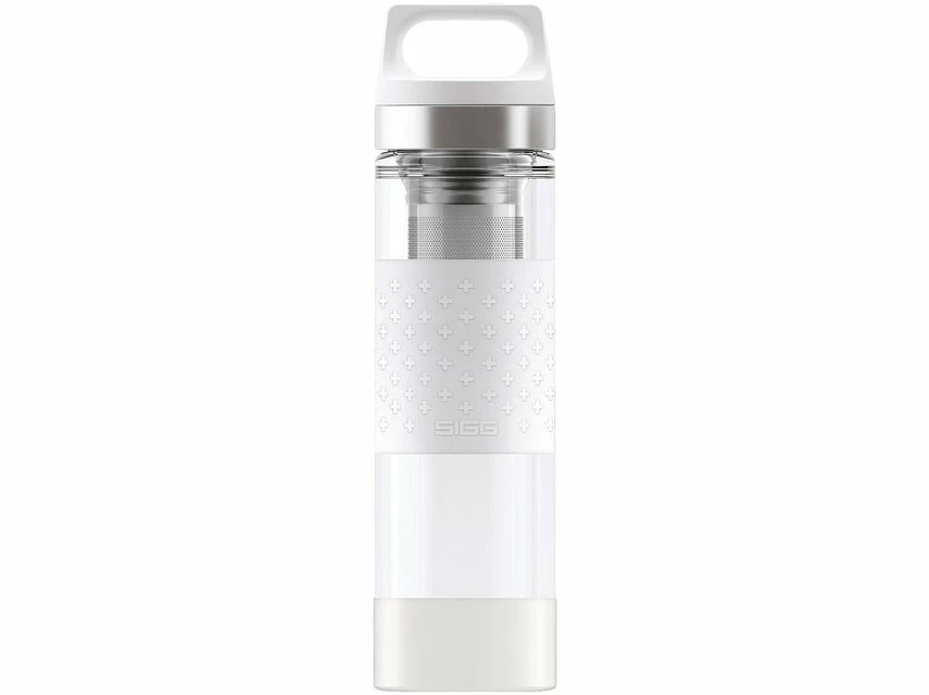 Diese schicke Trinkflasche von Sigg ist flexibel anwendbar und ist aus Borosilikatglas angefertigt. Die Glasflasche mit Doppelwand besitzt einen praktischen Verschluss aus Edelstahl, Griff und Stange sind aus Silikon. Die Flasche ist für warme und kalte Getränke geeignet und ist mit einem integrierten Teefilter und Sieb ausgestattet. Füllmenge: 0,4 Liter