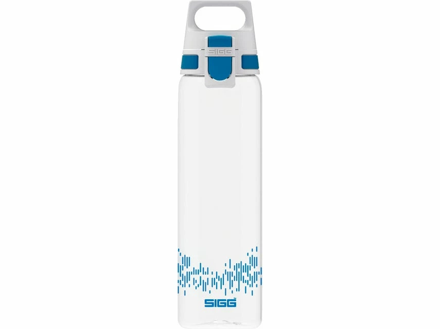 Durchsichtig wie Glas ist der neuartige Kunststoff Tritan. Sportlich gestylt mit grossem SIGG-Logo ist total klar, dass TOTAL CLEAR die ideale Flasche für zu Hause, fürs Büro und für den Sport ist. Die 0,75 Liter Grösse sorgt dafür, dass man immer und überall genug Wasser zur Hand hat. Ob man nun am Computer etwas zu trinken möchte oder beim Sport drinnen und draussen, die auslaufsichere Flasche ist devinitif ein guter Begleiter. Und dank innovativem ONE (Ein-Hand)-Verschluss mit extra grosser Öffnung extremst komfortabel. Das Motto Tragen, Öffnen, Trinken, Schliessen und Sichern funktioniert bequem mit einer Hand und auch das Befüllen und Reinigen ist ein Kinderspiel. Sogar Eiswürfel passen lässig in diese SIGG. Sie ist aus federleichtem, langlebigem Tritan, das geschmacks- und geruchsneutral ist. Natürlich frei von Schadstoffen wie östrogenaktiven Substanzen und Phthalaten für einen sicheren Trinkgenuss. per Stk.