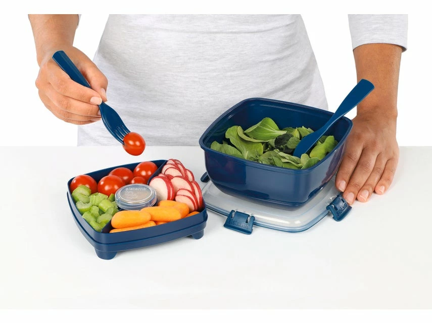Die perfekte Aufbewahrungsbox für unterwegs! Genießen Sie auch unterwegs knackige Salate, denn dank der Gummidichtung im Deckel und praktischen „Easy Locking Clips“ bleibt alles luftdicht verschlossen und bleibt länger frisch.