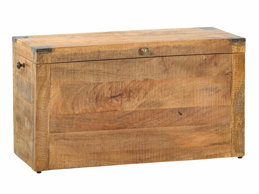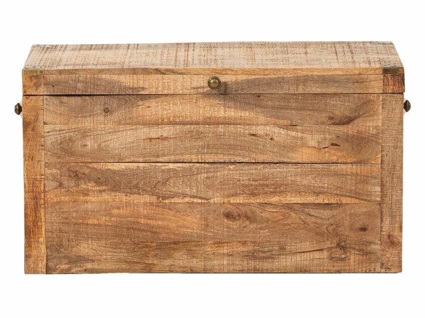 Modern und wohnlich präsentiert sich die braun gebürstete Truhe „Vito Curl“ mit Messingapplikationen zur Aufbewahrung von allerlei Kleinigkeiten.