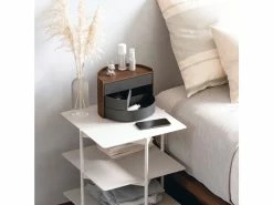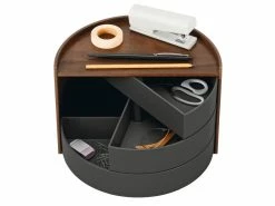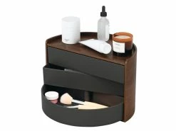 Funktional und dekorativ zugleich ist die Aufbewahrungsbox Moona. Die drehbaren Schubfächer können herausgezogen werden und dienen zum Verstauen von Schminksachen uvm. Auf der Präsentationsplatte finden kleine Accessoires, Parfüm, kleine Pflanzen oder andere Gegenstände ihren Platz.