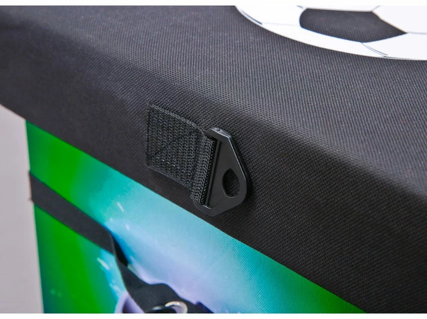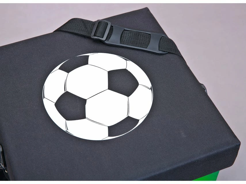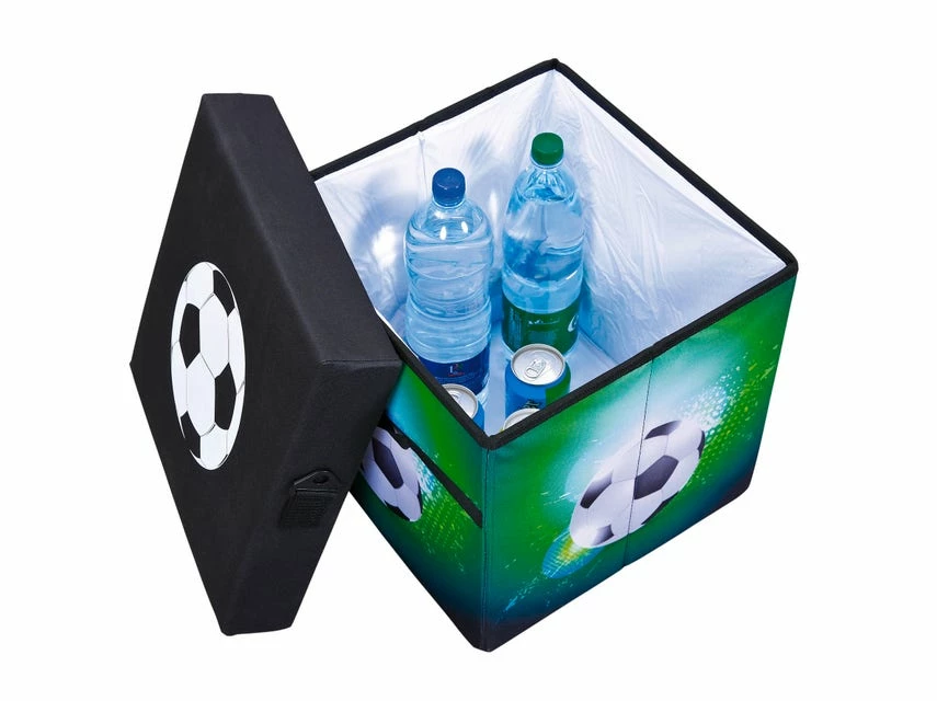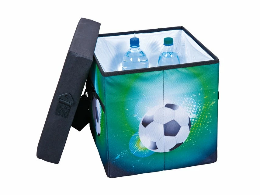 Faltbare Kühltasche und Hocker in Einem! Mit abnehmbaren Tragegurt. In trendigem Fußball Design.