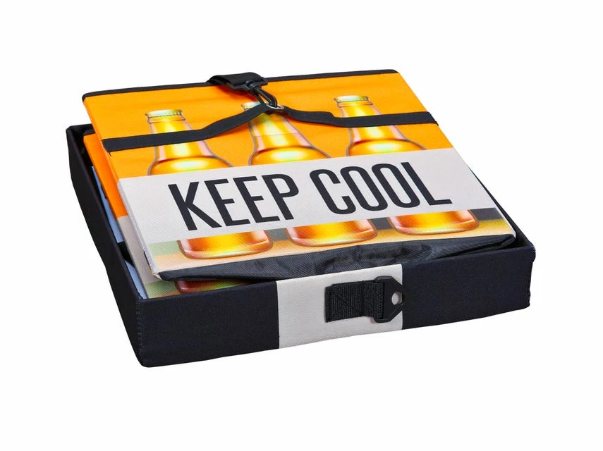 Faltbare Kühltasche und Hocker in Einem! Mit abnehmbaren Tragegurt. In trendigem Design.