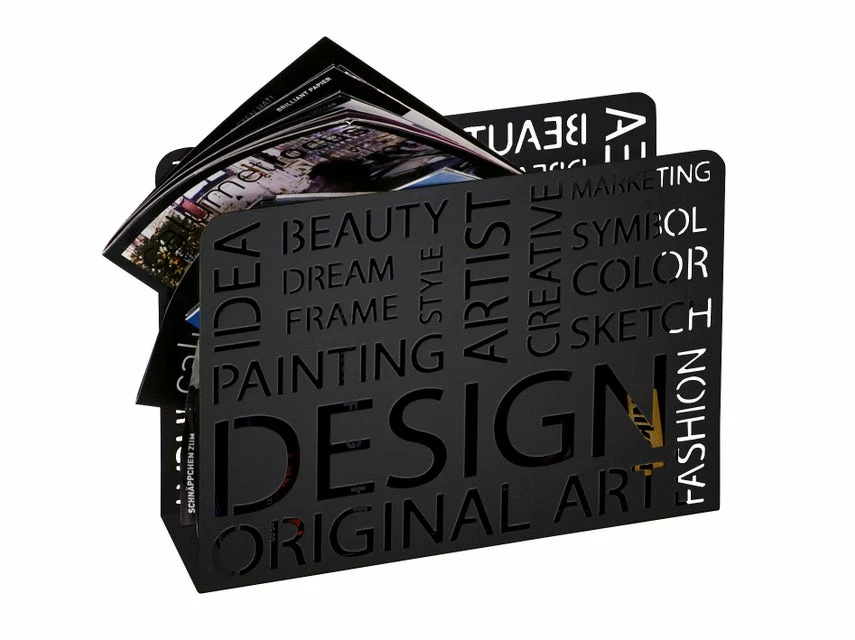 Hier sind Ihre Magazine und Zeitungen perfekt aufbewahrt und jederzeit griffbereit zur Hand. Der Zeitungsständer „Pop“ ist praktisch und modern im Design. Englische Schriftzüge zieren das aus schwarz lackiertem Metall hergestellte Wohnaccessoire. Abmessungen ca. 35 cm breit, 28 cm hoch und 10 cm tief